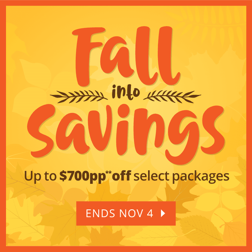 Pack your bags! Get great savings on select departures to some of our most popular destinations.