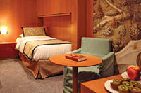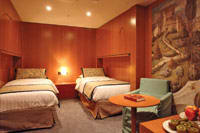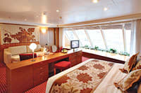 Romantica's 678 staterooms are fairly spacious and have ample storage. All cabins feature pastel hues in an elegant minimalist style and include a personal safe, TV, refrigerator, private bathroom with shower and hairdryer, and small sitting area with a table and two chairs. Outside cabins and suites are also available.
