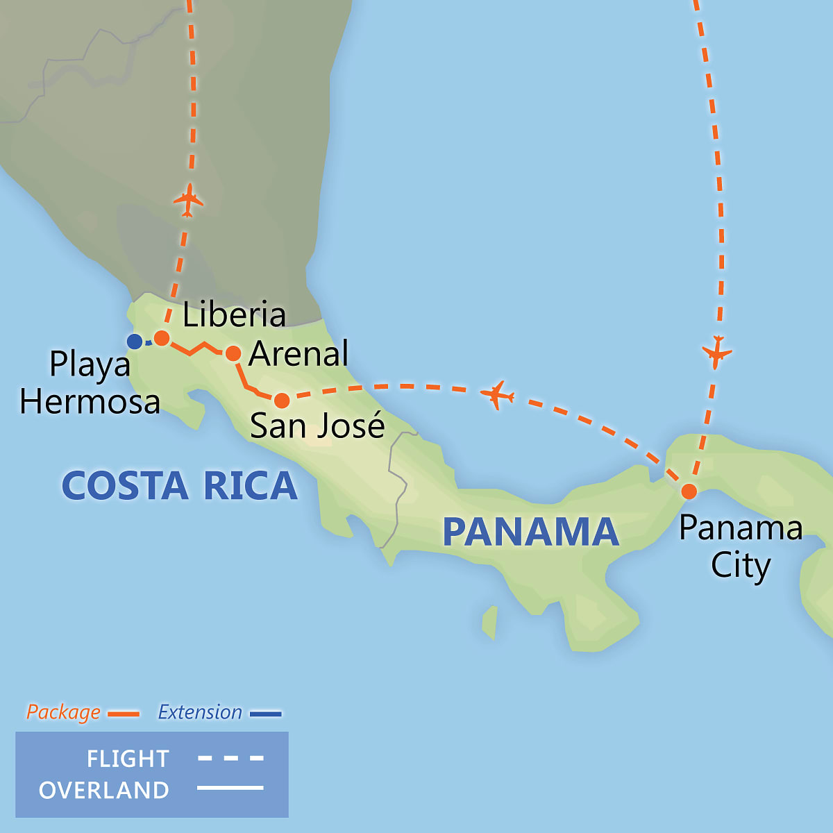 The capital San José, spectacular Arenal and its volcano, 2 relaxing days in Playa Hermosa; travel on your own with flights & hotel included. Optional pre-tour to Tortuguero.