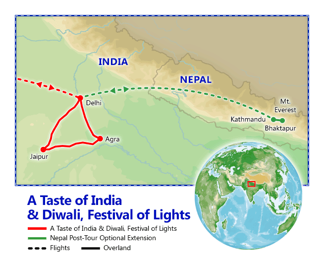 Savor India's Golden Triangle: Delhi, Agra & the Taj Mahal, then celebrate Diwali in Jaipur; plus Nepal extension